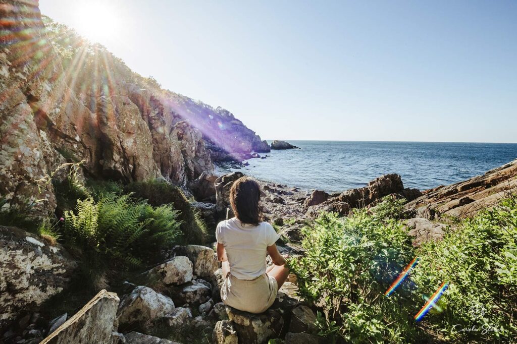 Die Umsetzung: Sie fotografierte die Szene im genauen Winkel und auf einer Höhe, in der sie als kleines Motiv dazu passen würde. Danach fotografierte sie sich selbst sofort vor Ort, um die gleiche Lichtstimmung zu erhalten. Anschließend bearbeitete Carola die Bilder zu Hause in Lightroom und Photoshop.